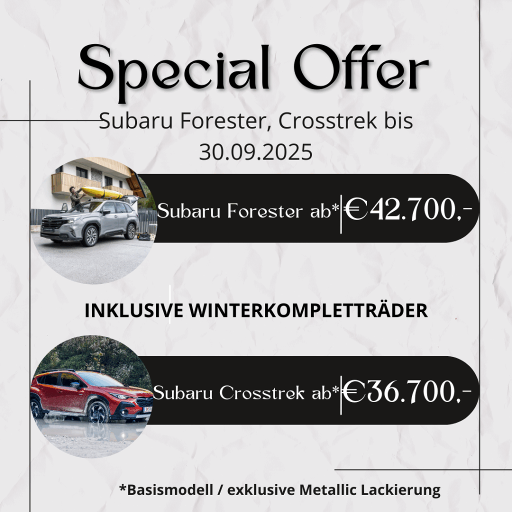 Wenn Sie auf der Suche nach einem neuen Subaru sind, sind Sie bei uns genau richtig. Unser Verkaufsteam steht Ihnen mit kompetenter Beratung zur Seite und hilft Ihnen dabei, das ideale Modell zu finden – sei es der vielseitige Subaru Outback, der kompakte Subaru Impreza oder der sportliche Subaru XV. Wir bieten Ihnen eine breite Auswahl an neuen Subaru Fahrzeugen, die sowohl Ihre Bedürfnisse als auch Ihren Stil perfekt widerspiegeln. Besuchen Sie uns, erleben Sie die Subaru Modelle bei einer Probefahrt und finden Sie gemeinsam mit uns Ihr neues Traumauto!